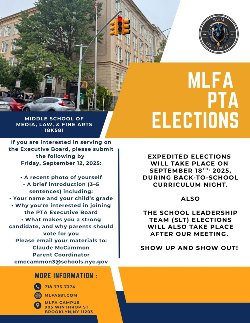The official date for our Parent-Teacher Association (PTA) and School Leadership Team (SLT) elections is now September 25th. This event will take place in person, and we strongly encourage all parents and guardians to attend.